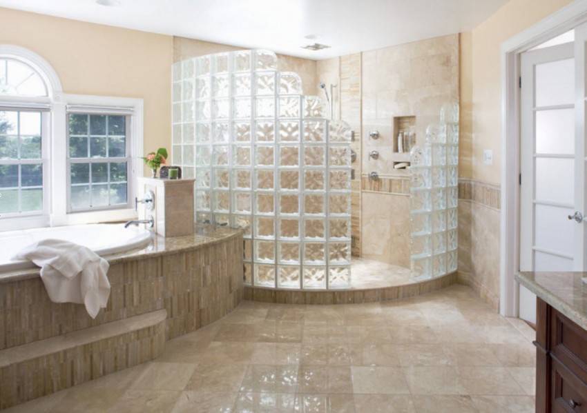 Стеклоблоки между ванной и душемИсточник remontbp.com