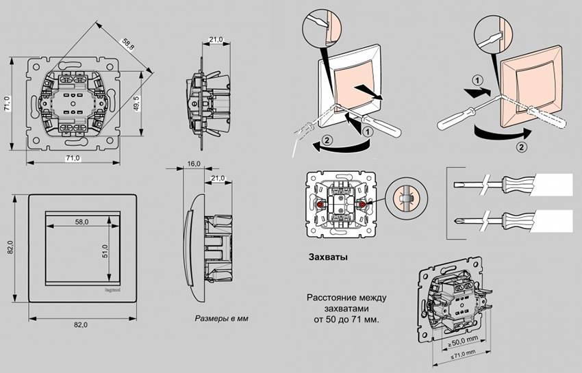 Кстати, многие фирменные выключатели имеют на шасси специальный маркер, по которому легко отмерить нужную величину длины зачистки изоляции.
