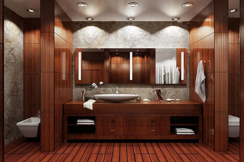 Вариант оформления ванной комнаты в стиле модерн пластиковыми панелямиИсточник american-woodwork.com
