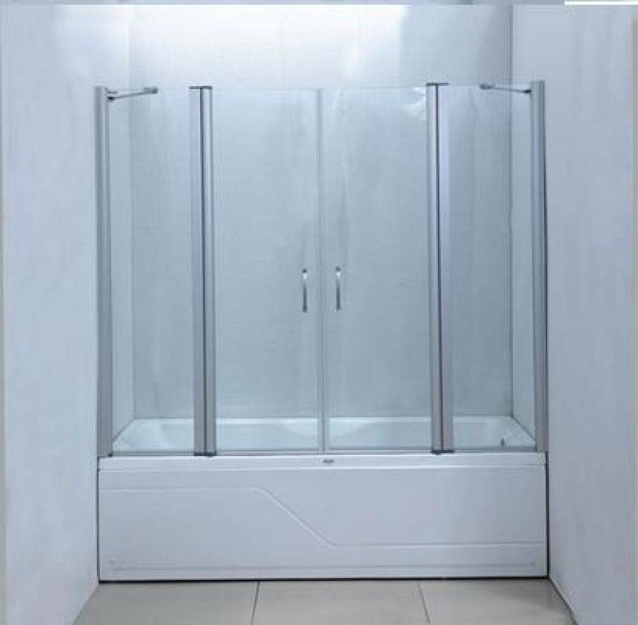 Продукция этого производителя представлена вертикальной ширмой, выполненной из прочного закаленного стекла. Крепление изготавливают из хрома. Такое заграждение может иметь несколько вариантов и иметь как левостороннее, так и правостороннее расположение.