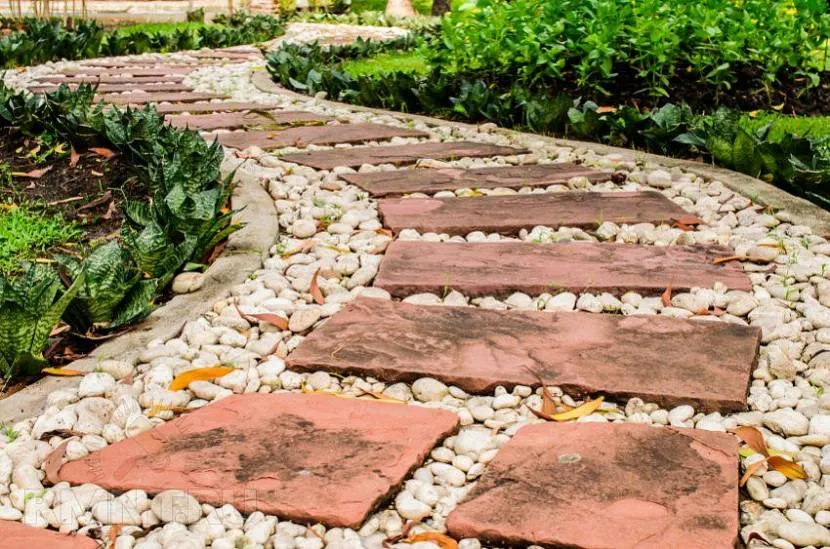 4. Фактура: для мощения садовых тропинок лучше всего подходит плитняк с шероховатой поверхностью. Такой камень устойчивый к постоянным механическим нагрузками и не становится скользким после дождя.