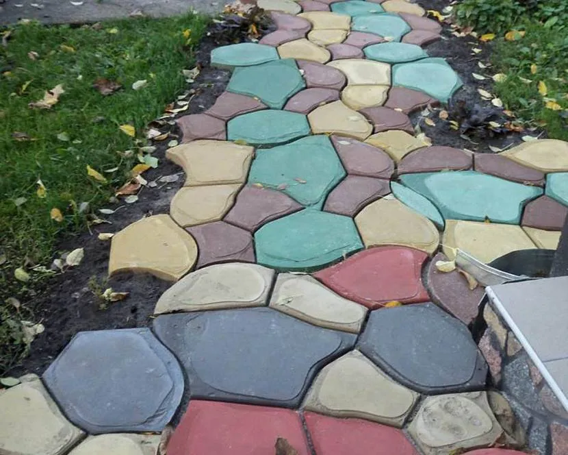 Разноцветная дорожка из бетонных плитокИсточник emupauto.ru