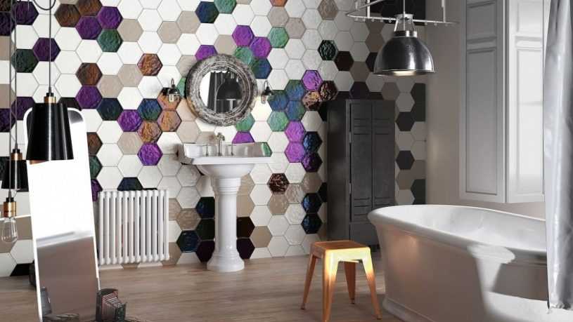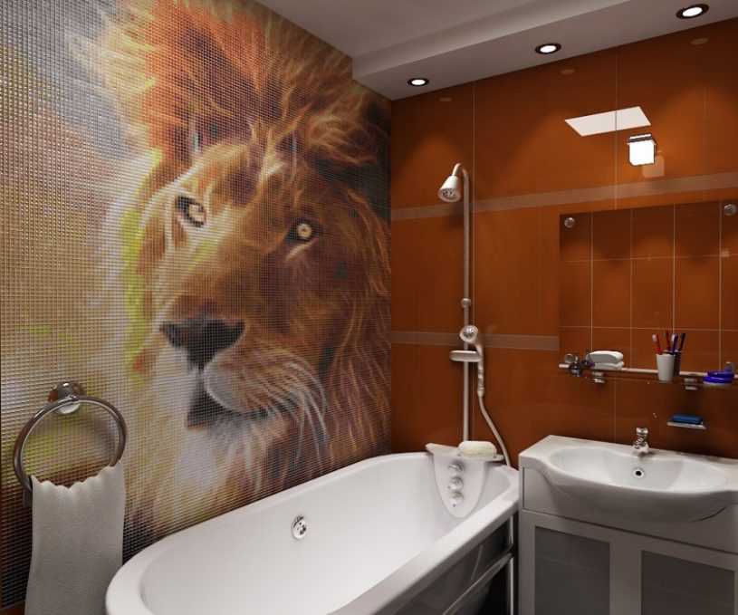 Выбор мозаики для ванной комнаты в настоящее время стал проще из-за того, что плитки с рисунком продают уже в собранном виде. Все, что остается мастеру, — это нанести раствор и приложить лист с кафелинами к стене, а после высыхания клея намочить бумажную основу и снять ее с плиток.