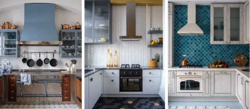 Плитку применяют в современных стилях: loft, industrial, modern, скандинавский или деревенских: прованс, кантри. Выбирая отделочный материал, нужно опираться на дизайн и цвет кухонной мебели и текстиля.