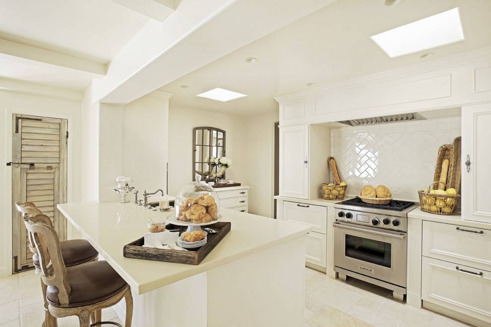 Самыми популярными цветами фартука на кухне являются кремовый, бежевый и белый. Поскольку керамика – это самый практичный отделочный материал, к гладкой глазури грязь и пыль практически не прилипает. Керамическая плитка легко протирается, поэтому фартук можно делать любого цвета. Тем более на светлой поверхности разводы, пятна грязи и жир будут заметны меньше, чем на изделиях темного цвета. На фоне светлого «кабанчика» вид рабочей зоны будет выглядеть очень опрятным. Ко всему прочему белый, бежевый и кремовый цвет сделают помещение светлее и визуально увеличат пространство.