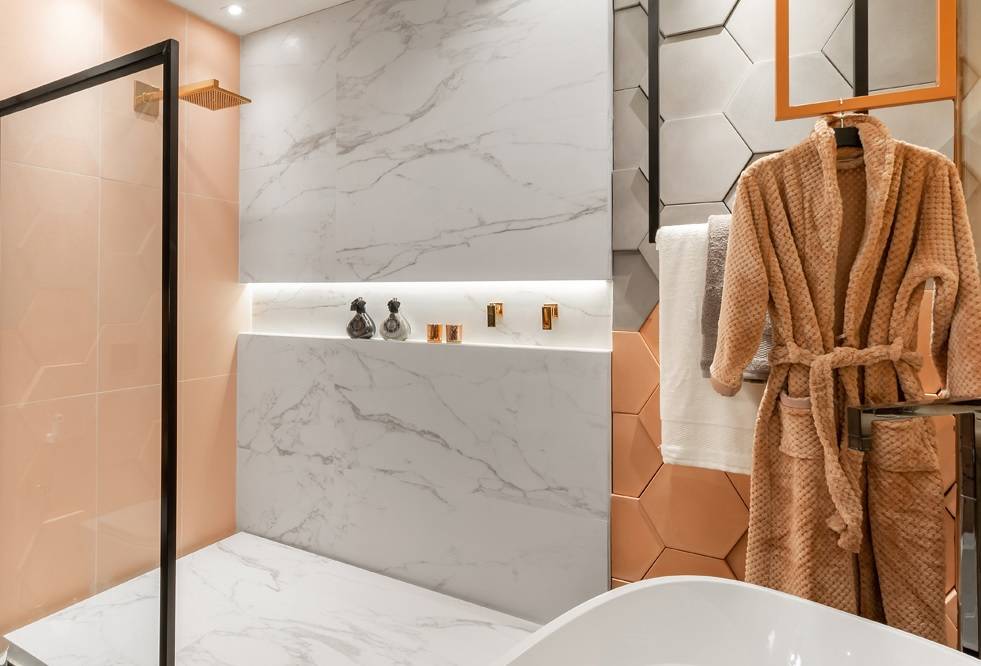 Сегодня большие форматы ассоциируются с элегантностью, особенно когда речь идет о схожести с природными текстурами — дерева или камня. В то же время, популярна мозаика, а также плитки небольшого формата, которые могут придать ванной комнате винтажный вид.
