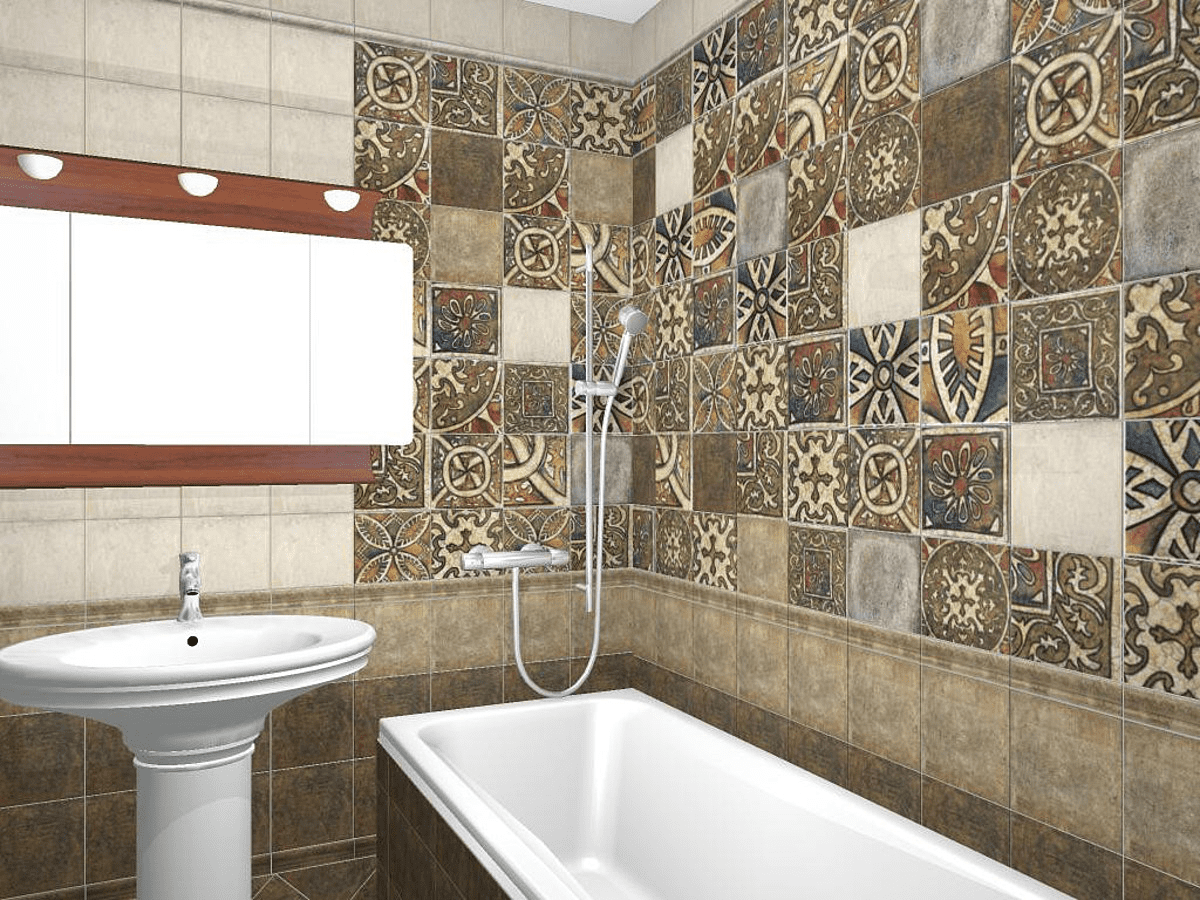 Дизайн плитки пэчворк в ванной
