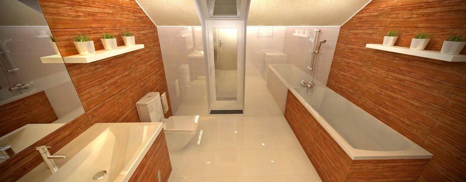 Мечта многих – ванная, отделанная деревом, обустроенная на мансардном этаже.