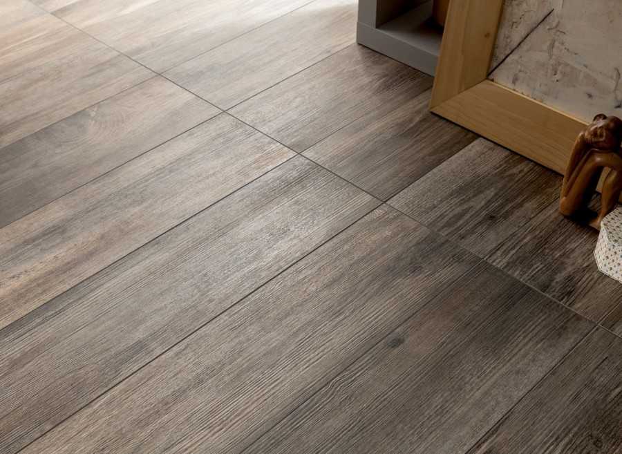 Для отделки пола, лучшим вариантом станет прочный керамогранит. За счет прямоугольной формы и рельефной фактуры, он внешне ничем не отличается от натуральной древесины и напоминает паркетную половую доску.