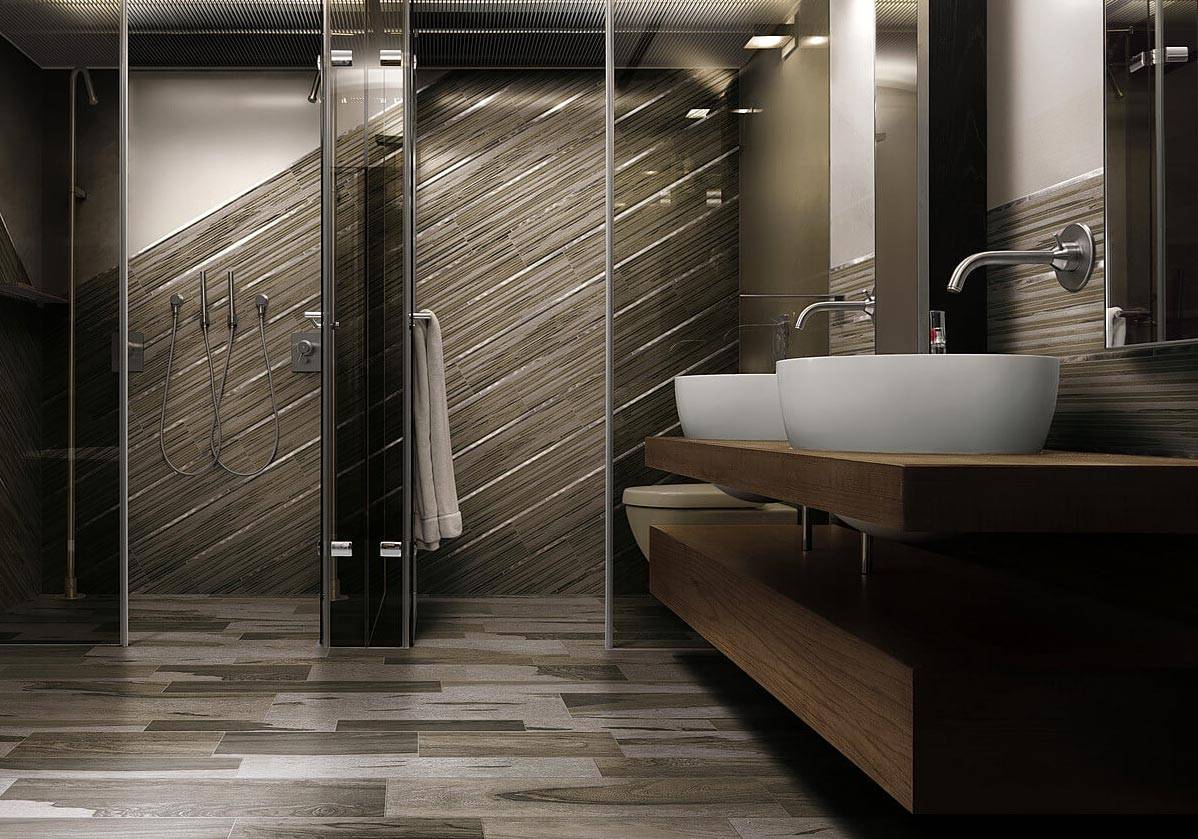 Настенная плитка, имитирующая древесный принт, фактуру и теснение, благодаря легкому уходу и красивому внешнему виду, прекрасно подходит для реализации самых разнообразных дизайнерских идей.