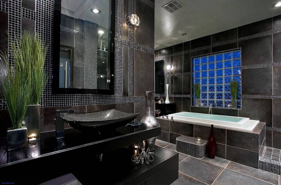 Сочно-матовая, ярко-черная, разнообразная по оттенкам серая керамическая плитка уместна для ванной, гостиной, прихожей.