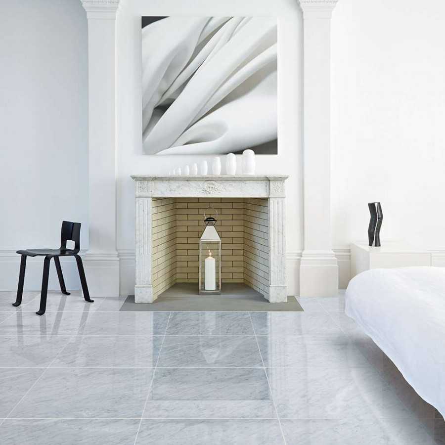 Белый мрамор, считается роскошным из всех, характерен наименьшим количеством примесей. Различают оттенки благородного белого с сероватым или кремовым оттенком. Рекомендуется, как правило, для оформления стен больших и особенно маленьких помещений.