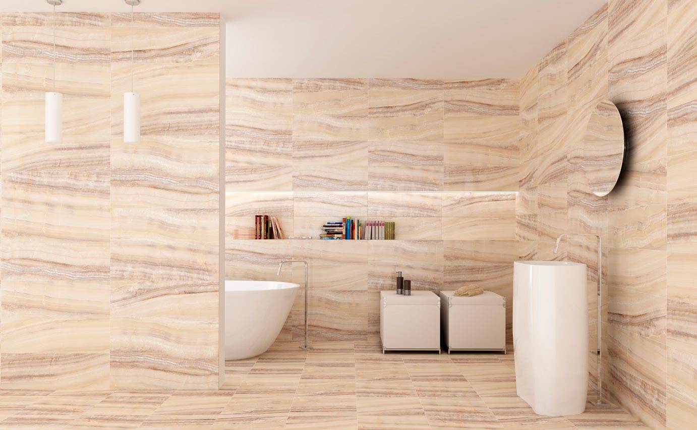Бежевые оттенки позволяют зрительно увеличить площадь помещения, создают фон для орнаментов, коллажей. В ванной комнате можно сочетать мраморные блоки разных золотистых оттенков. С помощью песочной гаммы оттенков можно реализовать укладку “шахматкой” на полу, создать акценты на стенах.