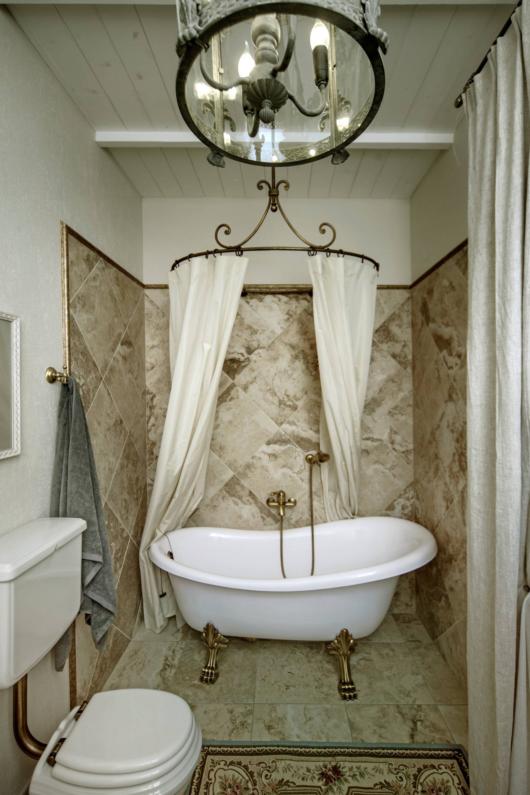 В просторном помещении устанавливают ванную на изогнутых ножках