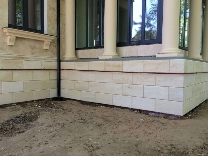 Во время эксплуатации фасада из травертина отделка становится светлее под влиянием атмосферных осадков. Шлифованная и полированная поверхность со временем становится матовой, шероховатой, приобретает винтажный вид. Это естественный процесс, который не разрушает структуру камня, но о такой особенности необходимо знать.