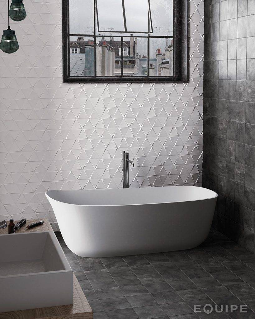 - 3D-изделия для стен ванной с рисунком подчеркнут минимализм площади;