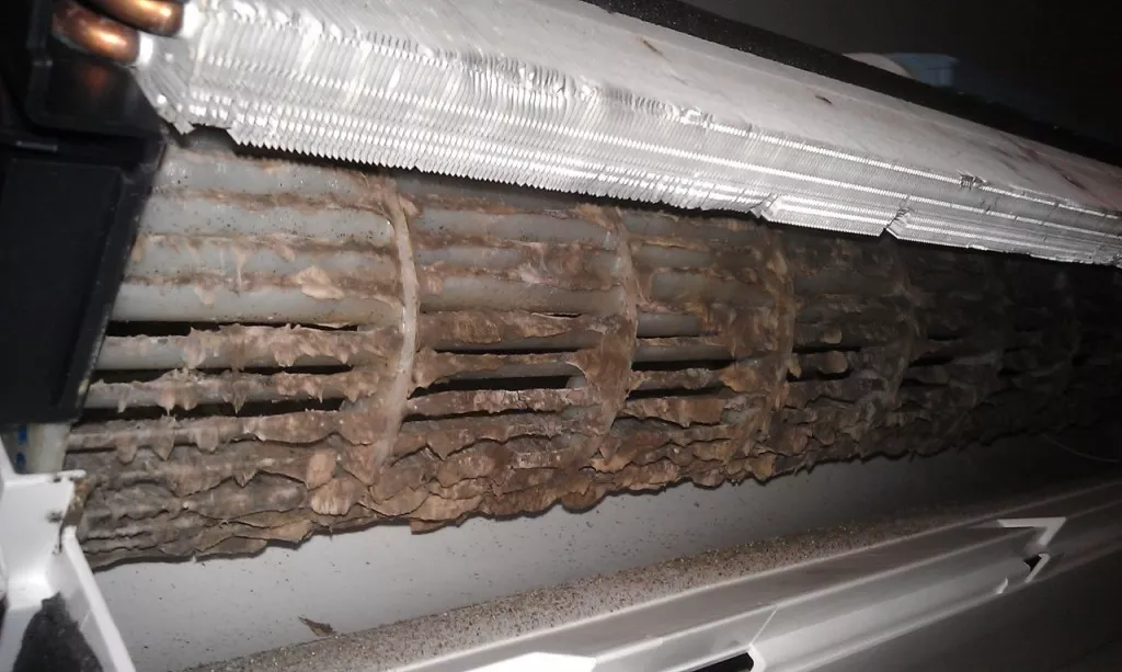 Кондиционер может не греть воздух вследствие забивания теплообменника следующими элементами: