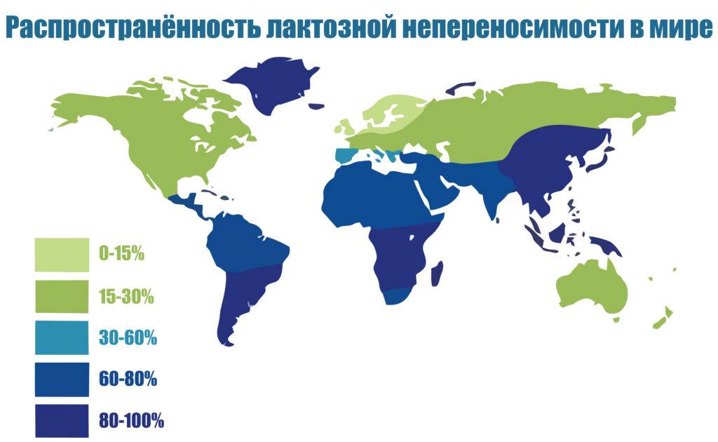Таким образом, до 70% населения планеты страдают непереносимостью лактозы, при этом в России этот показатель равен примерно 11-25%. Данная патология предполагает исключение из рациона молока и (в отдельных случаях) продуктов молочнокислого брожения.