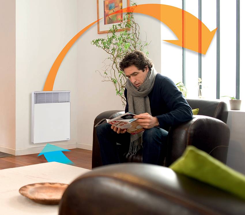Конвекция может быть как естественная, так и принудительная. При естественной конвекции слои воздуха, расположенные в зоне теплообменника, нагреваются, становятся легче и поднимаются вверх, заменяя более тяжелый холодный воздух. Он, в свою очередь, опускается вниз и процесс повторяется. Для принудительной конвекции в некоторые модели встроен вентилятор.