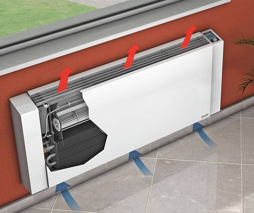 - Конвекторы с принудительной циркуляцией теплоносителя.
