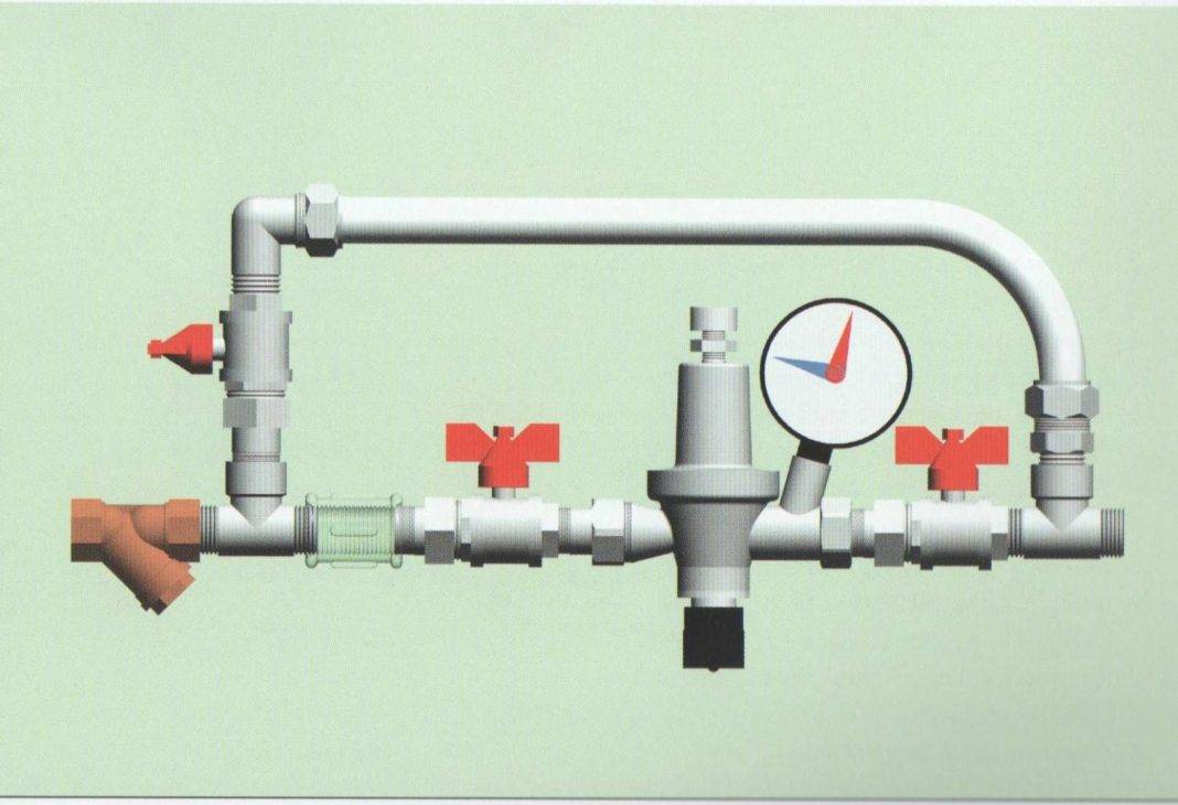 Редуктор устанавливают на обратном трубопроводе перед котлом для подачи подпиточной воды в контур сети. Вода из горводопровода поступает через клапан при падении давления в сетевом трубопроводе, вызванного утечками или сбросом воздушной пробки. Если по схеме, предусмотрена установка циркуляционного насоса, то его монтируют вторым. Иначе возможно нарушение работы всей системы отопления.