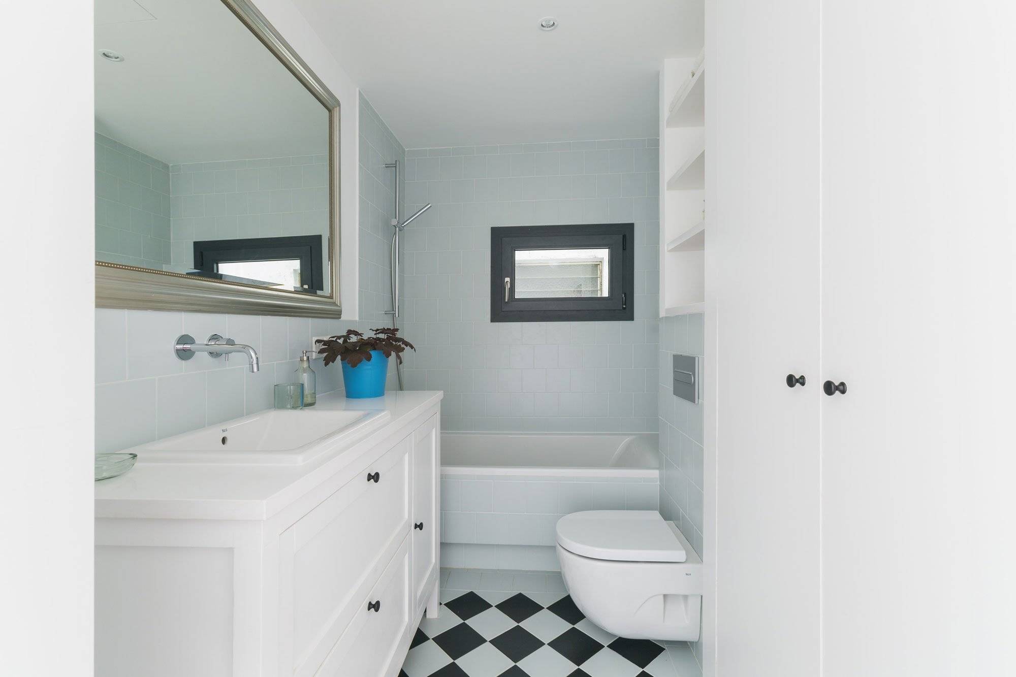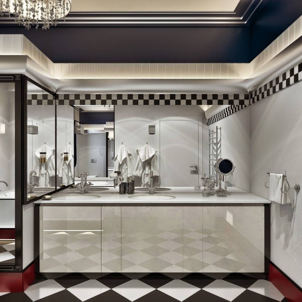 Подбирая каждый предмет, помните о том, что в ванной должно быть достаточно места для систем хранения, удобной раковины и свободное пространство. При этом между ванной или раковиной и любым гарнитуром нужно оставлять расстояние.