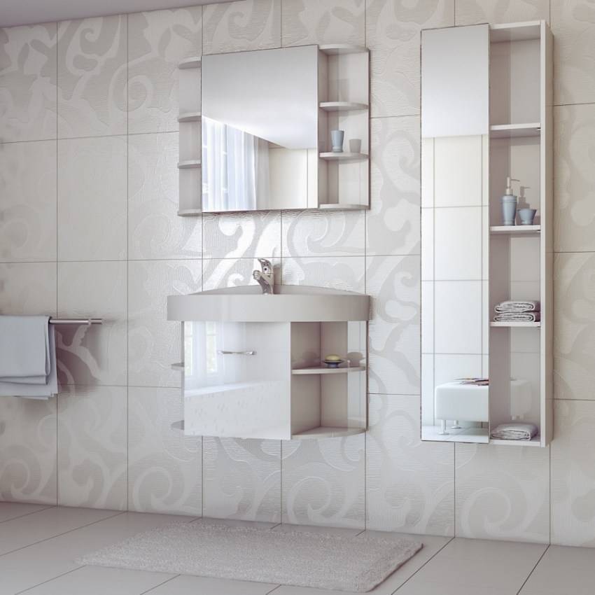 При наличии свободного места гарнитур можно дополнять функциональным пеналом, который и предусматривает вместительное пространство для большого количества банных принадлежностей благодаря внушительной высоте и большому количеству полочек.
