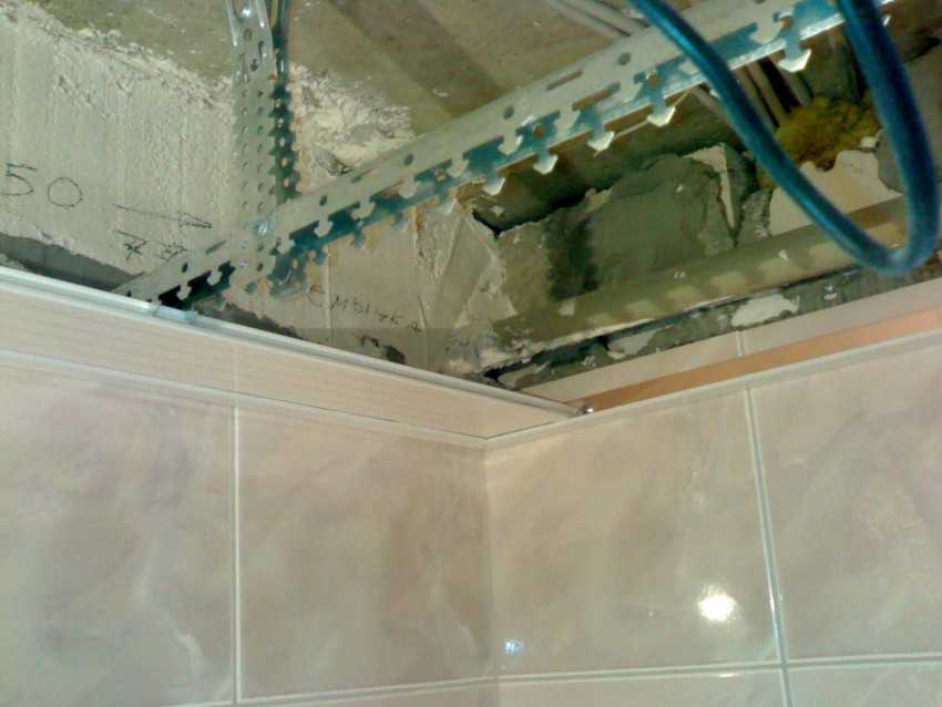 Возведение подвесной системы – это один из пунктов в обустройстве ванной, следовательно, нужно определить его роль среди других плановых мероприятий. Монтаж креплений, направляющих шин и реек – это достаточно чистый и скорый процесс, если сравнивать его, к примеру, с отделкой стен керамикой. Пыль и мусор при таких работах, практически отсутствуют, а наиболее трудным шагом в реализации, является точное крепление периметра и подвесов. Поэтому такую конструкцию сооружают на последнем этапе, после укладки пола и облицовки стен. Это самая грамотная и логически верная последовательность действий.
