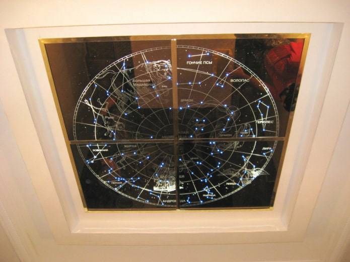 Такое нетривиальное потолочное оформление в сочетании с темной зеркальной поверхностью, привнесет в комнату магическую атмосферу и ауру загадочности.