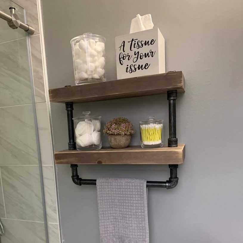 Однако, перед приобретением нового аксессуара или выполнении под заказ следует уточнить степень специальной обработки деревянных поверхностей. Пропитка антисептиком, влагостойким составом и вскрытие акриловым лаком позволят существенно продлить срок эксплуатации такой деревянной полки.