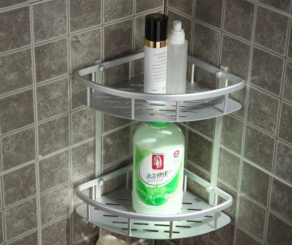 Угловые полочки помогут отлично сэкономить пространство комнаты. Некоторые модели идут с подсветкой из светодиодов, такие полки будут выгодно смотреться, и задавать некую изюминку любому интерьеру. Полочки могут крепиться как на саморезы, так и на присоски. Если вы будите располагать на полке легкие принадлежности, такие как стаканчик, со щетками, мочалки, зубную пасту – то стоит присмотреться к угловым полочкам на присосках. Если же место на полках будут занимать гели для душа, шампуни и прочее – то однозначно стоит выбрать крепление с саморезами.