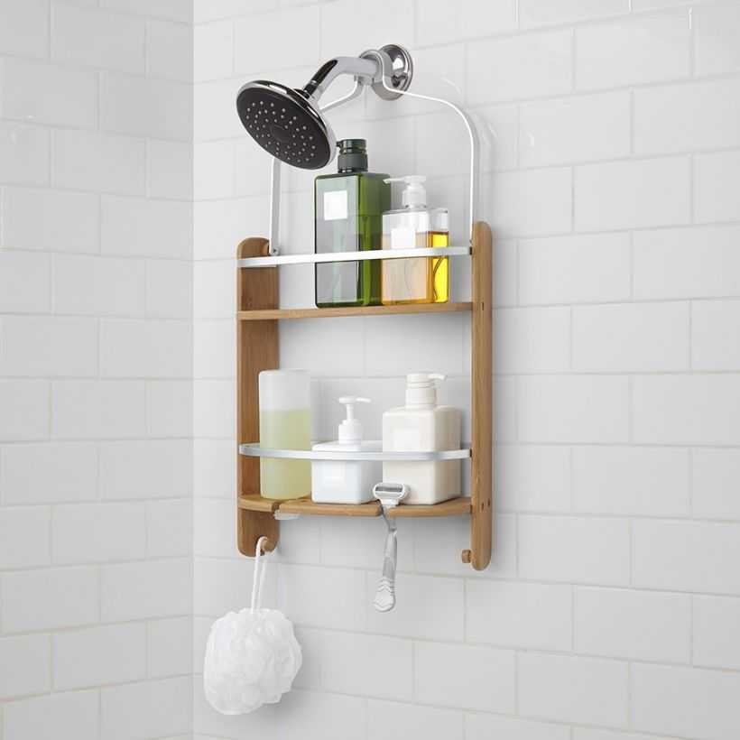Углы – это место, которое не всегда удается задействовать. Однако с помощью специальной полочки можно превратить их в практичное место для хранения банных принадлежностей. Благодаря своей форме и размерам, она не перегружает пространство.