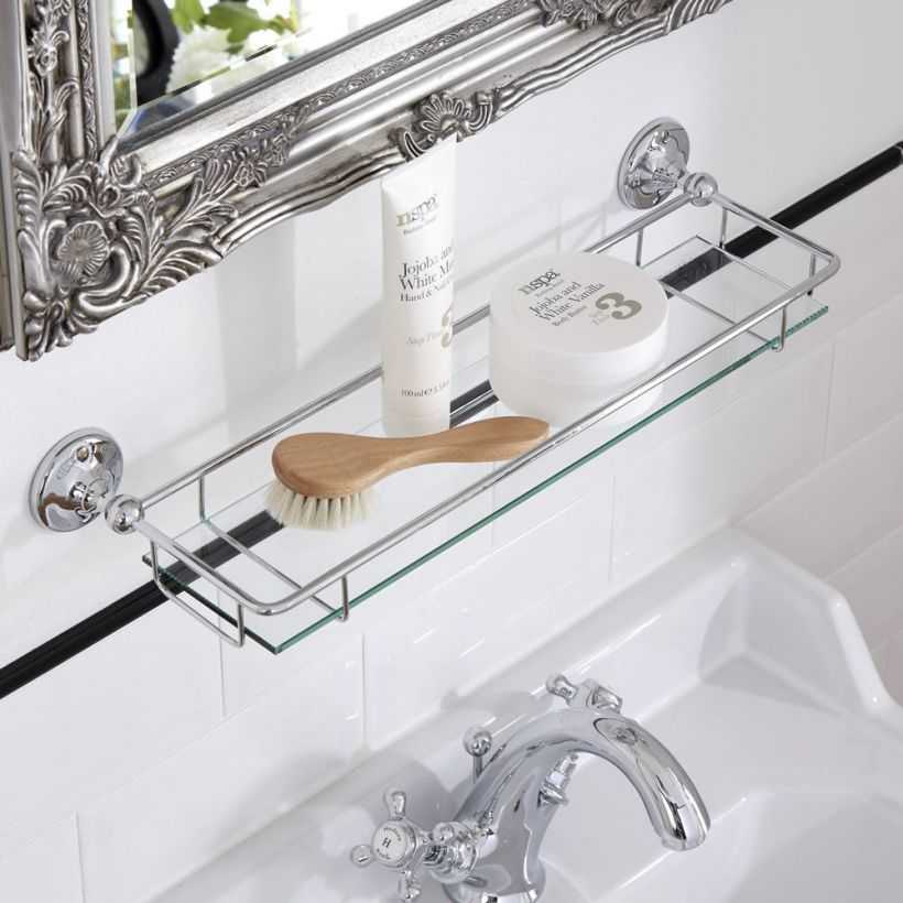 Такая полка является незаменимой частью ванной комнаты. Благодаря своему расположению она считается «самой популярной». На ней хранятся мелкие предметы и принадлежности, которые используются наиболее часто.