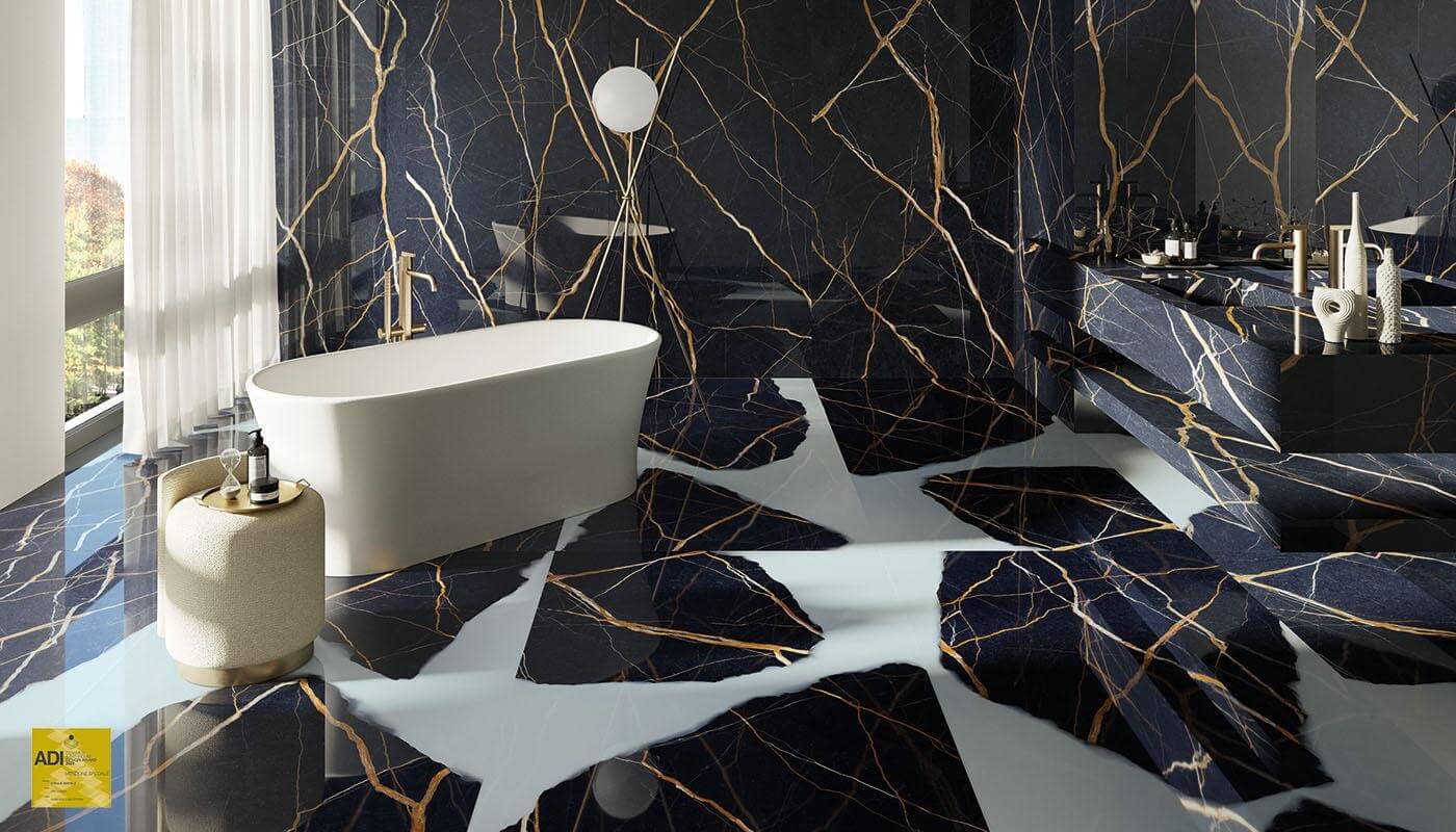 - Заменить на керамогранит. Прочные крупноформатные листы — отличная замена природному материалу. Благодаря минимальному количеству стыков, стена или пол будут выглядеть практически единым целым.