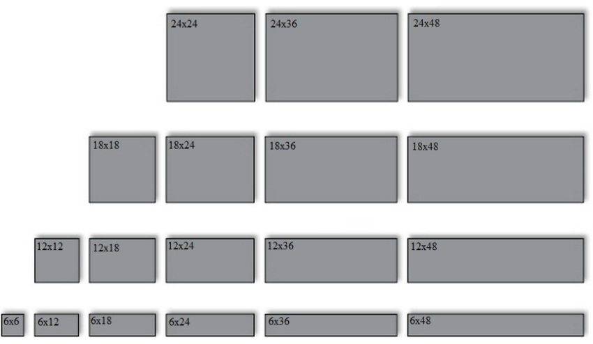 Немаловажное значение имеет размер и толщина керамики для пола. Согласно действующим нормативным документам, напольный кафель выпускается следующих форм и размеров: