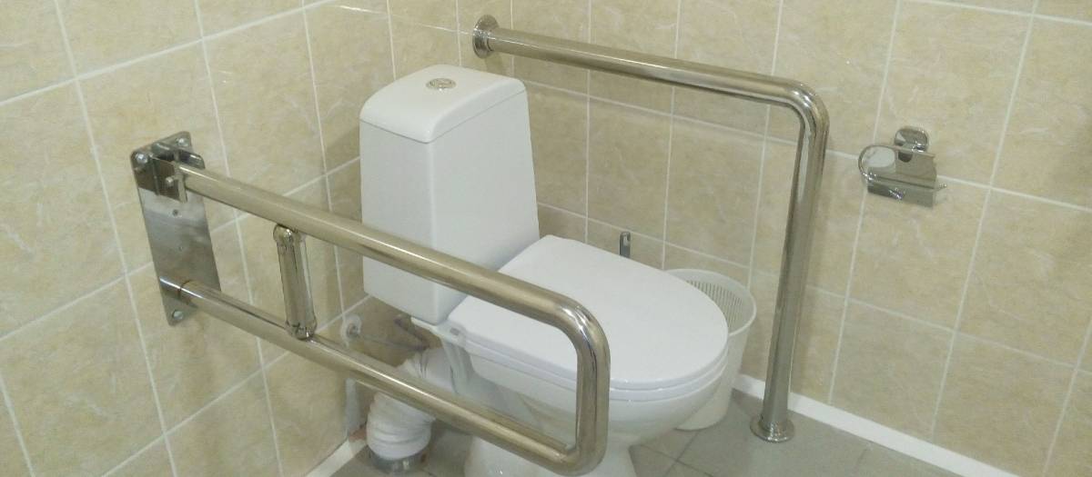 Что касается общественных мест, то поручни для инвалидов, как и специально оборудованные уборные с пространством для кресел-колясок прямо предусмотрены СНиП 35-01-2001. Ряд пунктов прямо посвящен обеспечению доступности и безопасности для инвалидов санитарно-гигиенических помещений.