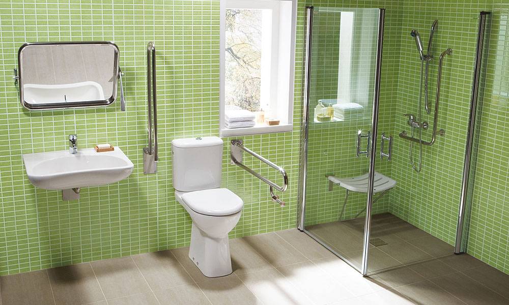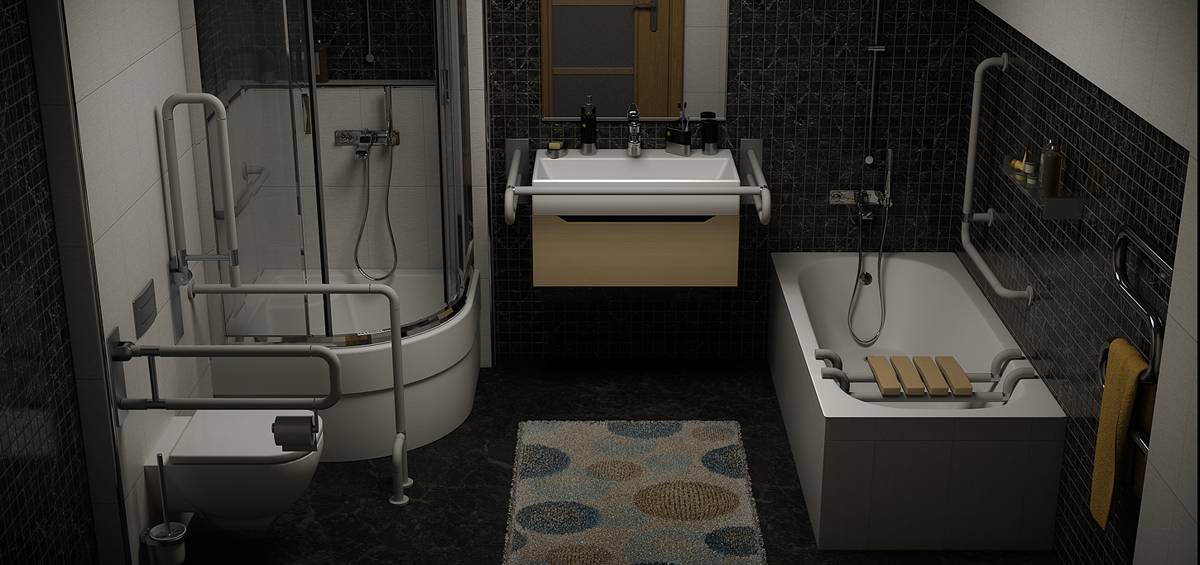 Санитарных комнат – откидные или поворотные конструкции для туалетов, поручень для раковины для инвалидов, а также модели, облегчающие использование ванн и душевых кабин.