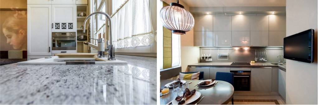 - Цельный – состоит из плиты без швов и стыков. Этот вид мебели ударопрочный, прекрасно выдерживает воздействие высоких температур и влаги.