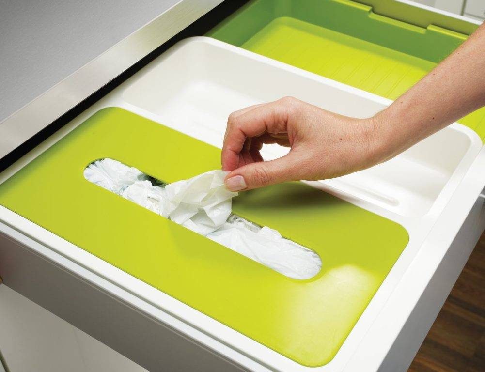 Некоторые хозяйки выделяют для полиэтиленовых маек отдельный ящик. Но, к сожалению, не у всех есть такая возможность, поскольку по стандартной планировке домов, кухни получаются небольшой площади и каждый сантиметр играет важную роль.