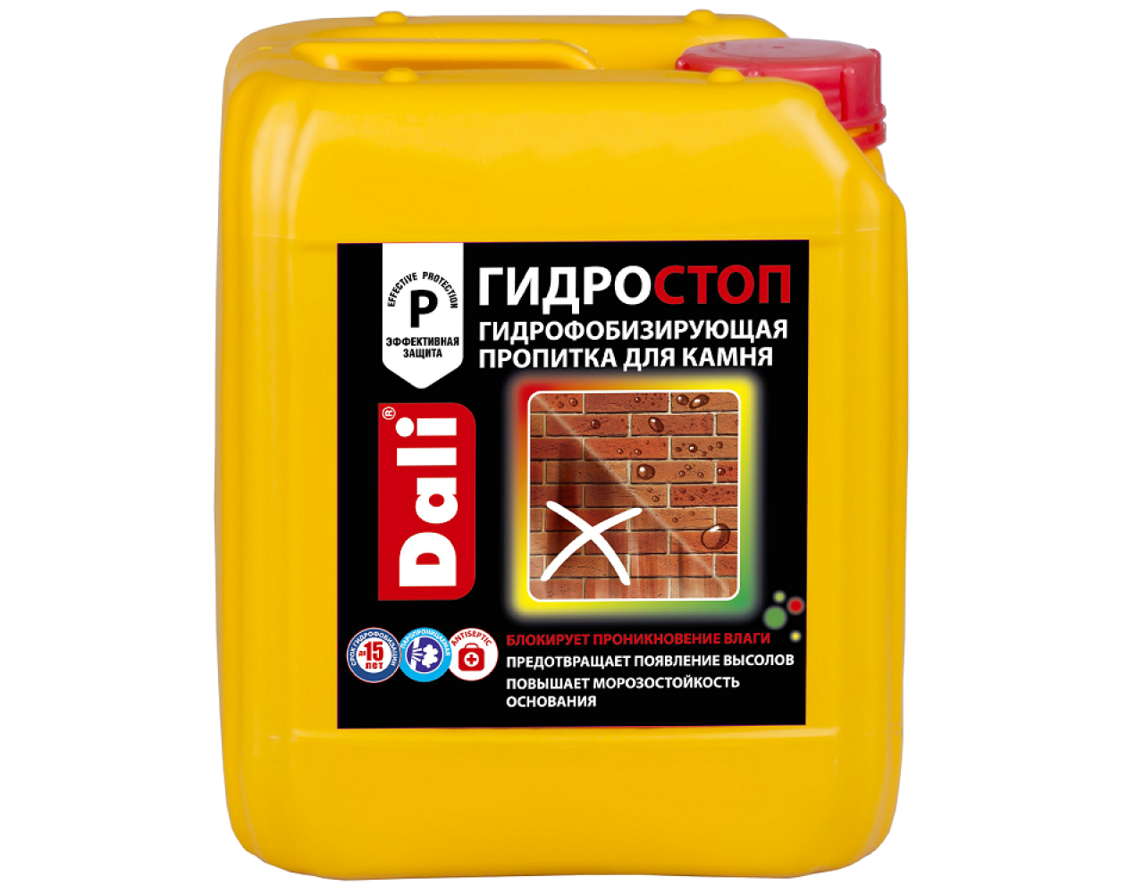 В чем принцип работы состава? Благодаря веществу влага быстрее испаряется с поверхности и не попадает внутрь. Гидрофобизатор начинает заполнять поры камня, не пропуская в них влагу. Влага попросту не может пройти через этот барьер.
