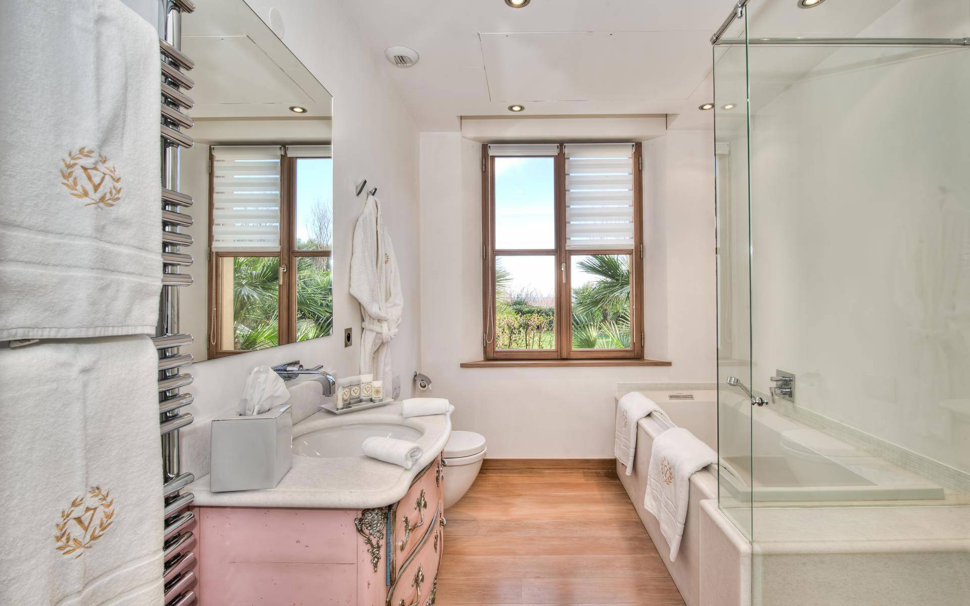 Флаконы для шампуня и мыла, стакан для зубных щеток, рамка зеркала должны находиться в гармонии с цветовой схемой помещения, не выбиваясь из него ярким пятном. Это касается и полотенец, и банного халата: если вы – девушка, любящая розовый, не стоит вешать пушистое розовое полотенце в зеленой ванной. Мужчинам в этом плане будет попроще.