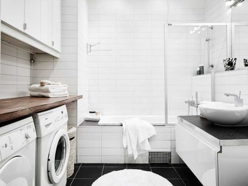 Если в пределах ванной комнаты находится стиральная машинка-автомат, которая издает шум или двигается по гладкой поверхности кафеля, то есть смысл присмотреться к антивибрационным коврикам из резины.