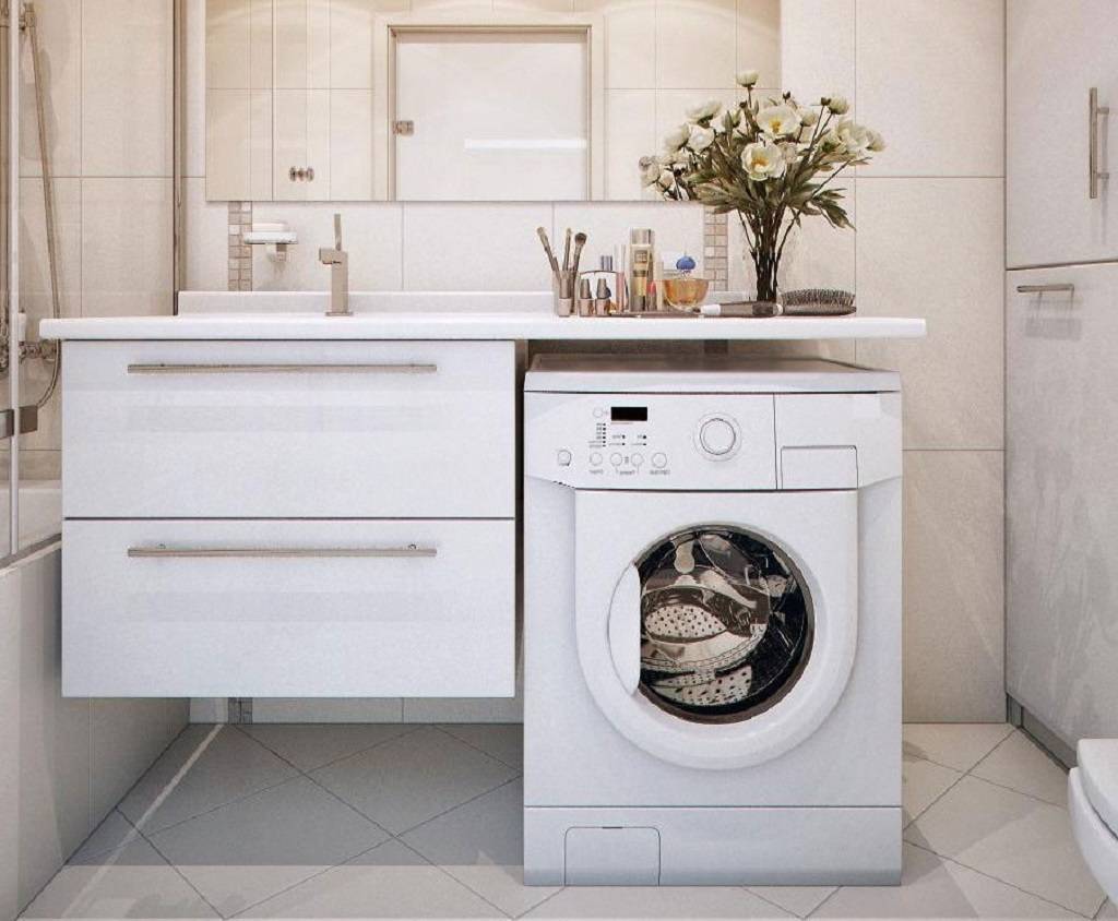 Однако, даже большую машину можно втиснуть в ванную, если разместить ее под раковину.