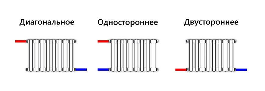 - Диагональное. Если соотношение подача-обратка идет сверху вниз, то K9 = 1,0. В противоположном случае — 1,25;