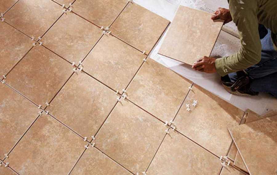 Способы укладки плитки на пол гораздо более простые, чем на стены, так как на поверхности отсутствуют люки. Укладка происходит по 3 варианту, описанному в нашем примере. Вычисляем количество целых рядов, отнимаем 1 и начинаем делать укладку от центра с целой плитки, по краям получаем 2 равномерных подрезки.