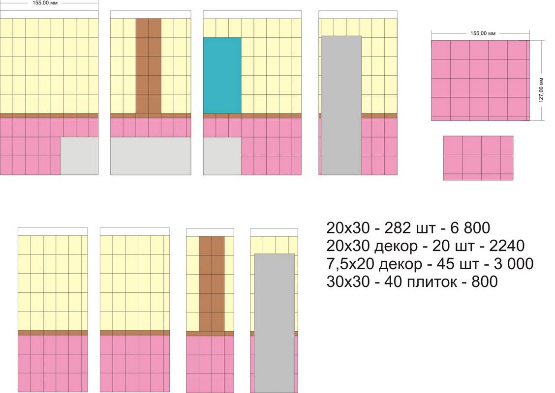 Размеры керамической плитки для стен диктуют выбор плана соответствующей раскладки, чтобы избежать излишней обработки плиток.