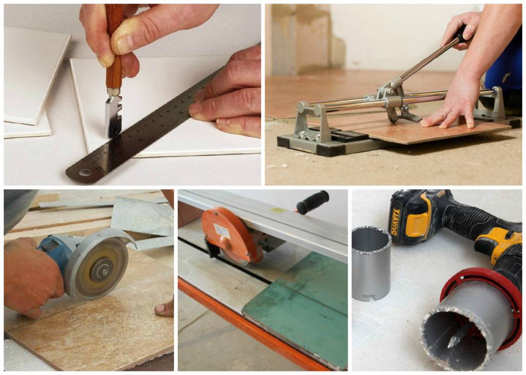 Резку керамики производят, используя электрический плиткорез. По мнению опытных плиточников, смоченная плитка режется ровнее, чем сухая. Замачивают ее на 30-60 минут. Плиткорез используют для резки материала толщиной больше 10 мм. Более тонкие экземпляры режут стеклорезом. Резку ведут плавными движениями, не применяя грубую силу, чтобы изделие не треснуло.