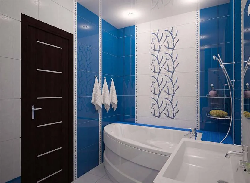 Контраст цветов обеспечивается использованием и применением плитки разных расцветок на поверхностях, подчеркивающих форму помещения, например, на смежных стенах или выступах, закрывающих коммуникации дома