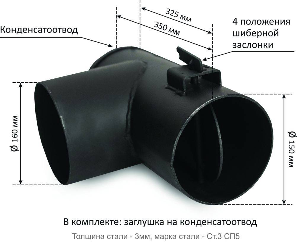 Стандартный шибер перекрывает до 85 % дымохода, что является оптимальным показателем для эффективного выведения продуктов горения.