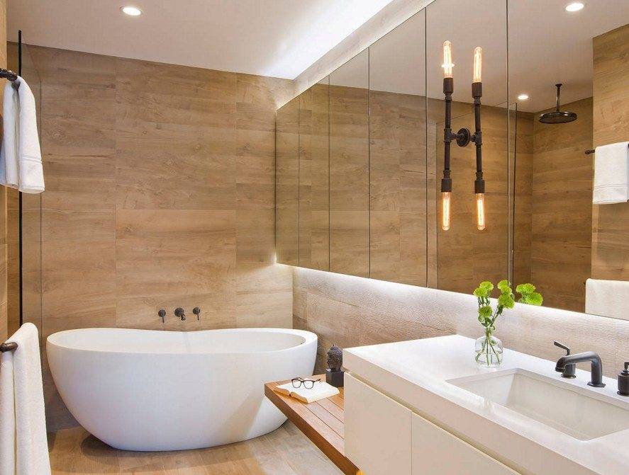 Если позволяют размеры помещения, можно использовать нетрадиционные решения для дизайна – это может увеличить комфортность пользования ванной и придать интерьеру эксклюзивность. Например, отдельно стоящая ванна, особенно из натуральных материалов, сразу же подчеркнет солидность и достаток своего владельца.